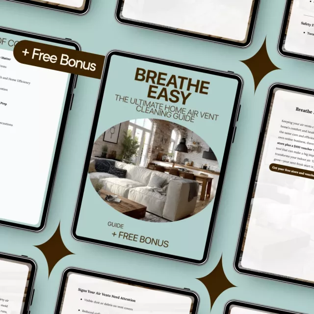 Don’t wait for your air vents to cause long-term damage to your health and home efficiency. Download “Breathe Easy: The Ultimate Home Air Vent Cleaning Guide” today, and start breathing cleaner, fresher air in your home. Whether you’re new to home maintenance or a seasoned pro, this eBook is the perfect resource to take control of your home’s air quality.