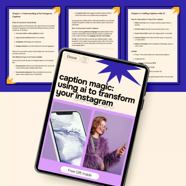 Struggling to write captions that actually connect, convert, and get noticed? Caption Magic: Using AI to Transform Your Instagram is a practical, easy-to-follow ebook that shows you exactly how to use AI to create engaging Instagram captions without losing your authentic voice. Whether you feel stuck staring at a blank screen or you want to scale your content faster, this guide walks you through using ai for instagram captions in a smart, human-centered way that feels natural and effective.