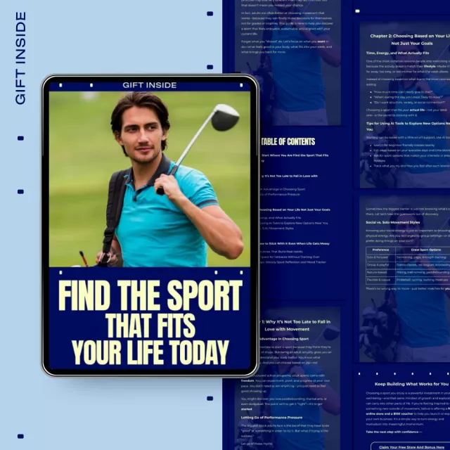 Find the Sport That Fits Your Life Today is a practical, judgment-free digital guide designed for adults who want to move more but don’t know where to start. If you’ve ever felt overwhelmed by options, pressured to “perform,” or unsure how to make movement stick in a busy life, this guide meets you exactly where you are. Instead of pushing unrealistic fitness goals, it helps you explore what genuinely works for your time, energy, and personality. This is not about becoming an athlete overnight. It’s about finding a sport you can enjoy and return to again and again.