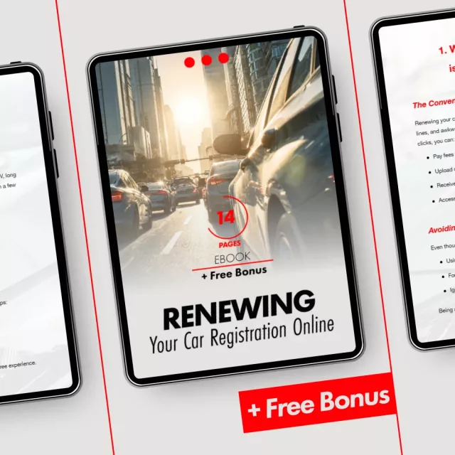 Renewing your car registration doesn’t have to be stressful. With our eBook, “Renewing Your Car Registration Online,” you can breeze through the entire process from start to finish—without the long lines or paperwork headaches. This comprehensive guide is packed with everything you need to know to renew your car registration online easily and efficiently. Whether you’re a first-time renewer or just looking for a quicker way to handle your registration, this guide will walk you through each step to ensure a smooth, hassle-free experience.