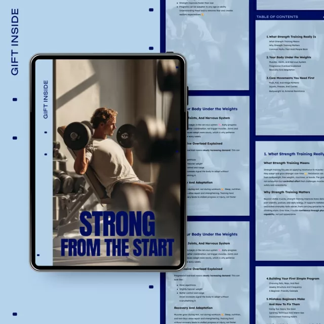Strong From the Start is perfect for beginners who are curious about strength training, people returning to fitness after a break, or anyone looking to develop a solid foundation before advancing to heavier lifting. If you’ve struggled with inconsistent training habits, confusing advice, or not knowing where to start, this guide provides everything you need to gain strength from the very first workout.
