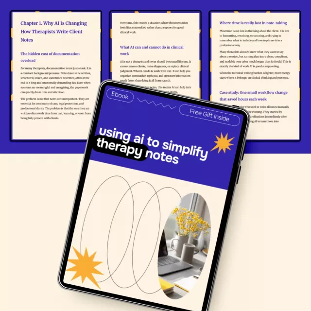 If you’re ready to spend less time on paperwork and more time focused on meaningful clinical work, Using AI to Simplify Therapy Notes is your next step. Download the eBook today and start building a documentation system that actually supports your practice.
