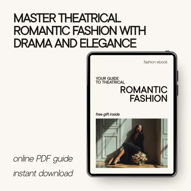 Unlock the secrets of creating a captivating wardrobe with “Your Guide to Theatrical Romantic Fashion.” Designed specifically for lovers of the Theatrical Romantic style, this guide will help you build a wardrobe that combines drama, elegance, and romance. With detailed insights into Kibbe outfit ideas, styling techniques, and practical wardrobe building, this guide is your personal blueprint to mastering the art of Theatrical Romantic fashion.